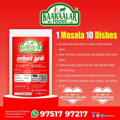 Experience the authentic flavors of homemade spices with Kaaraalar Foods and transform your everyday meals into a delightful culinary journey.